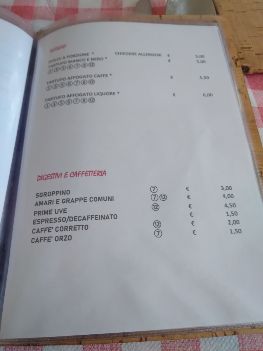 Trattoria Antica Altino Menu